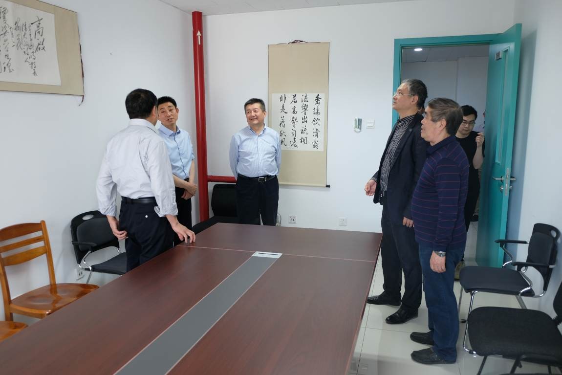 (验收专家组在研究基地成员陪同下参观基地办公室)