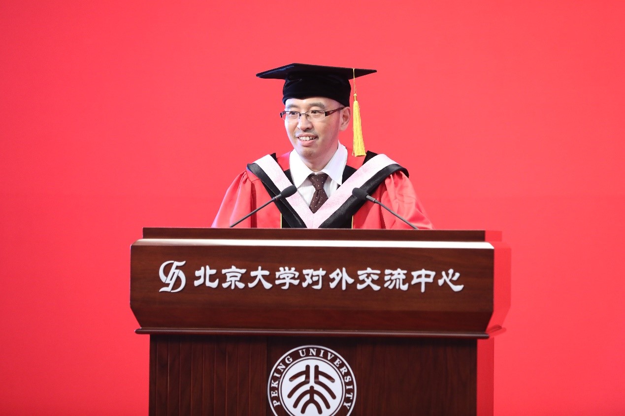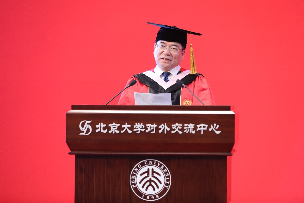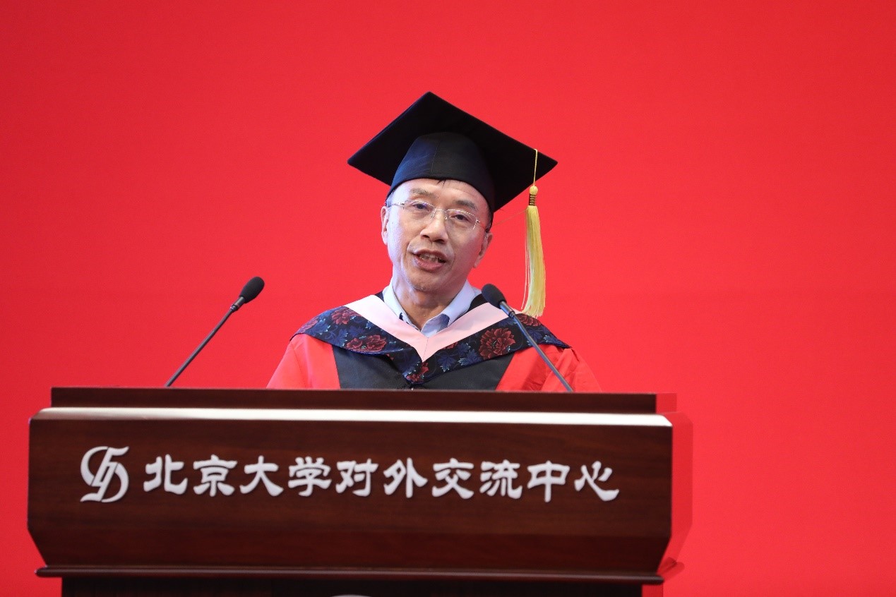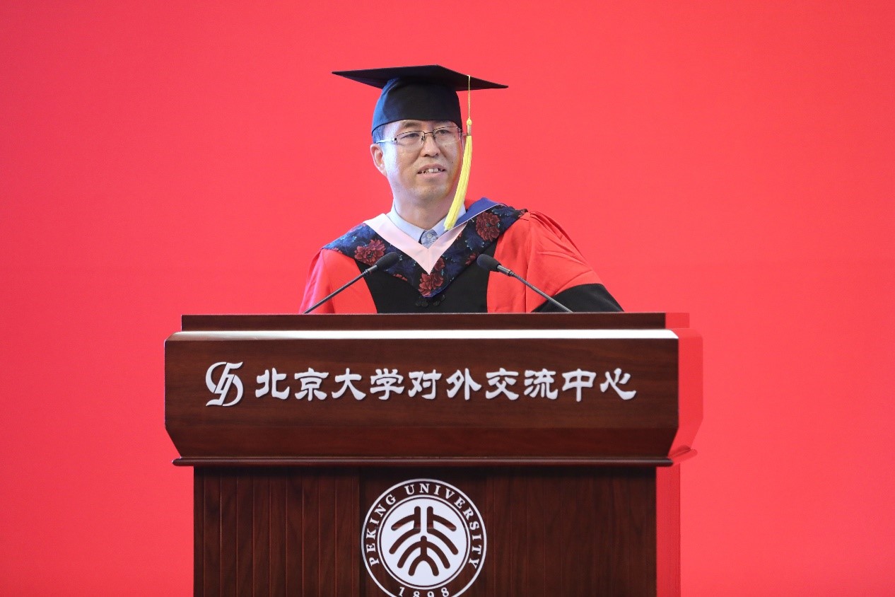 王文章教授作为导师代表寄语毕业生。他祝贺同学们圆满完成学业,并希望同学们始终保持北大人浓烈的家国情怀,争做具有使命感的君子;始终保持北大人独立思考的理性精神,争做追求真善美的君子;始终保持北大人乐观向上的进取精神,争做自强不息的君子;始终保持北大人的开拓创新精神,争做厚德载物的君子。