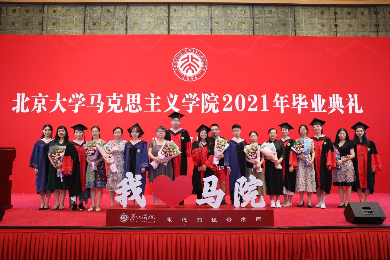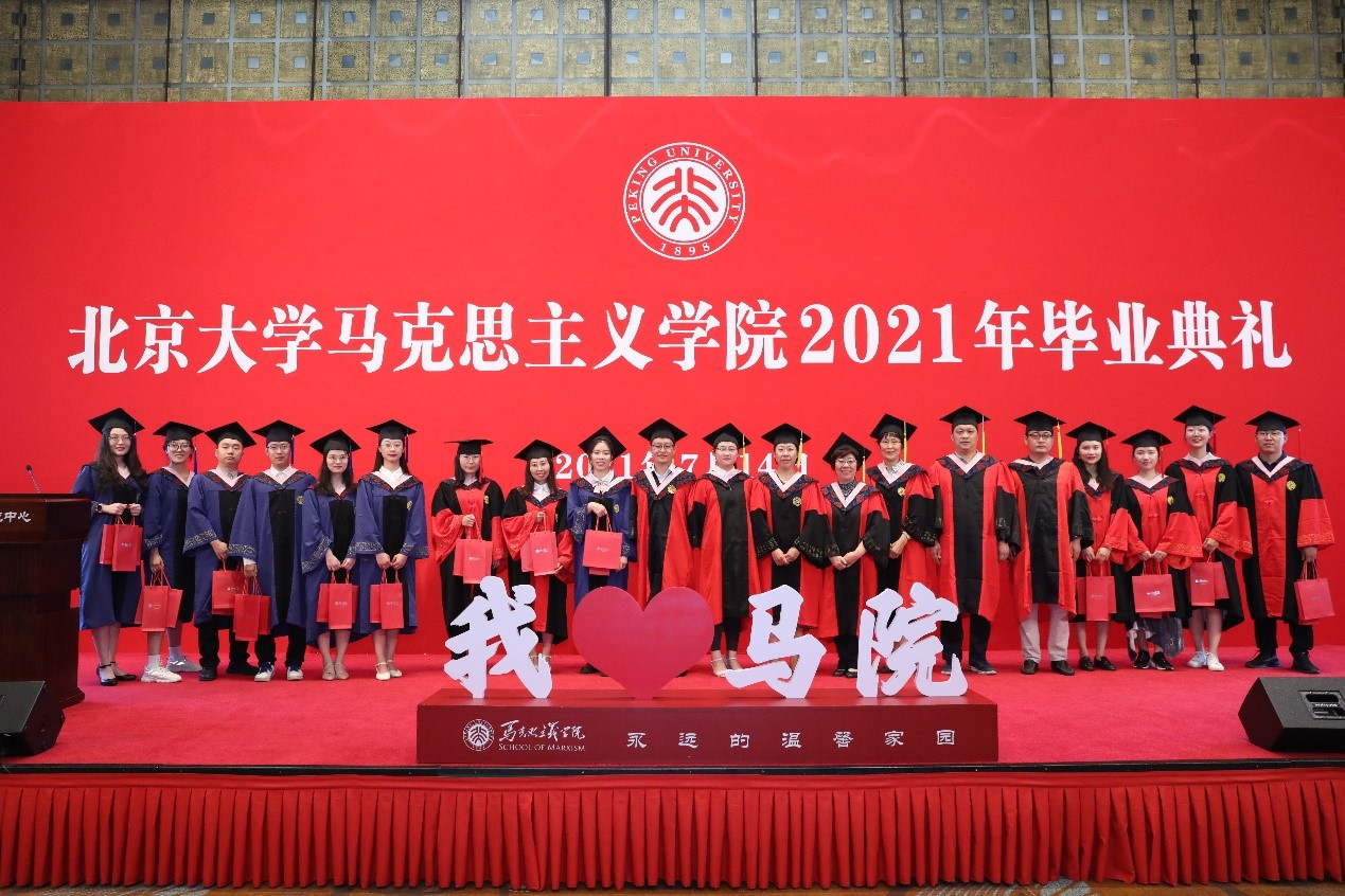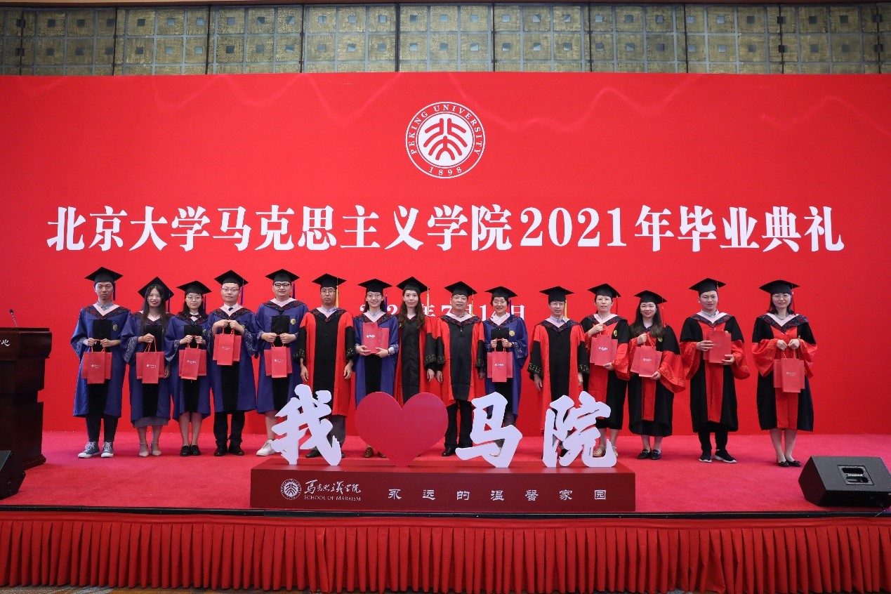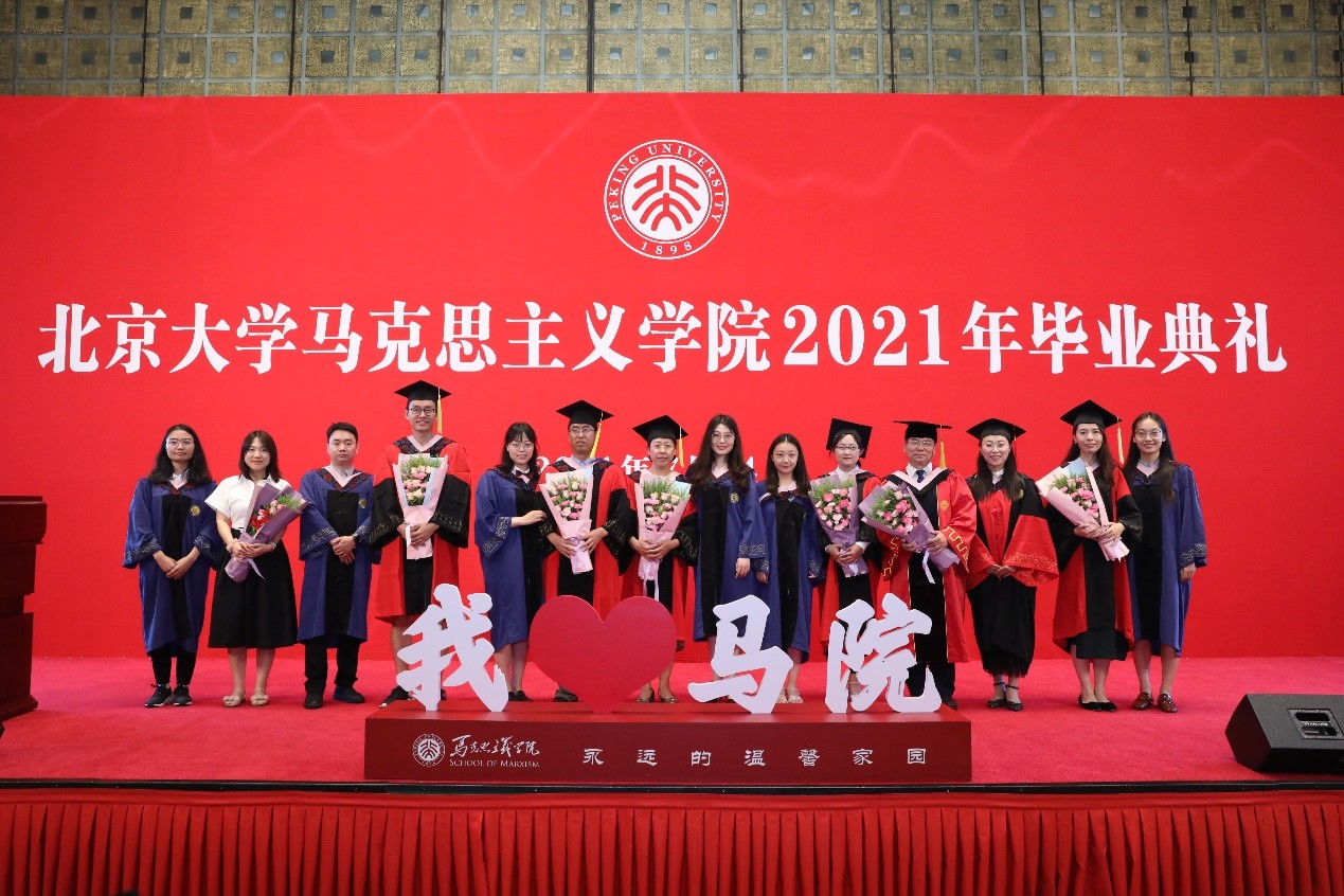 典礼在充满温情和回忆的毕业视频中拉开帷幕,视频记录了同学们在北大、在马院的学习生活中所留下的美好记忆,也寄托着同学们对未来的期待和展望。视频播放结束后,毕业生代表献唱优美动听的暖场歌曲《转身之间》《少年》《我们都是追梦人》《唱支山歌给党听》。歌声悠扬,情真意切,既表达着毕业的喜悦,也表达着马院人不忘初心,永远跟党走的坚定信念。