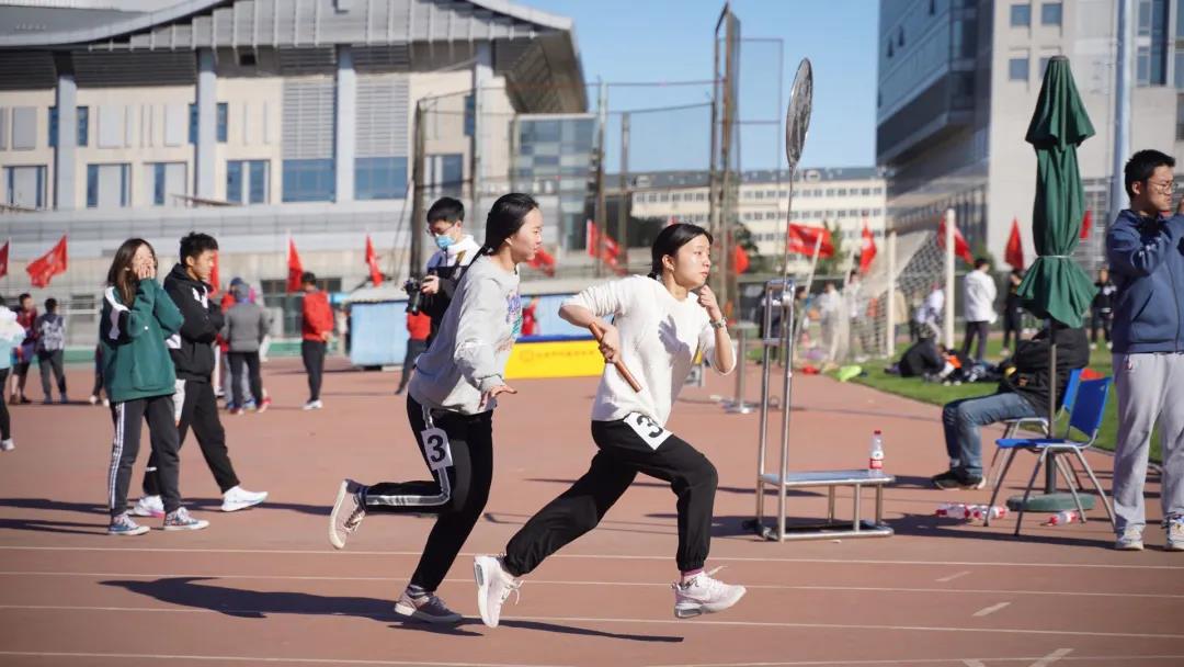 运动会团体项目上同学们踊跃参与,热情洋溢,一举夺得女子4x100米接力赛第六名,其中三棒都是本科新生,奋力奔跑,展现青春活力!