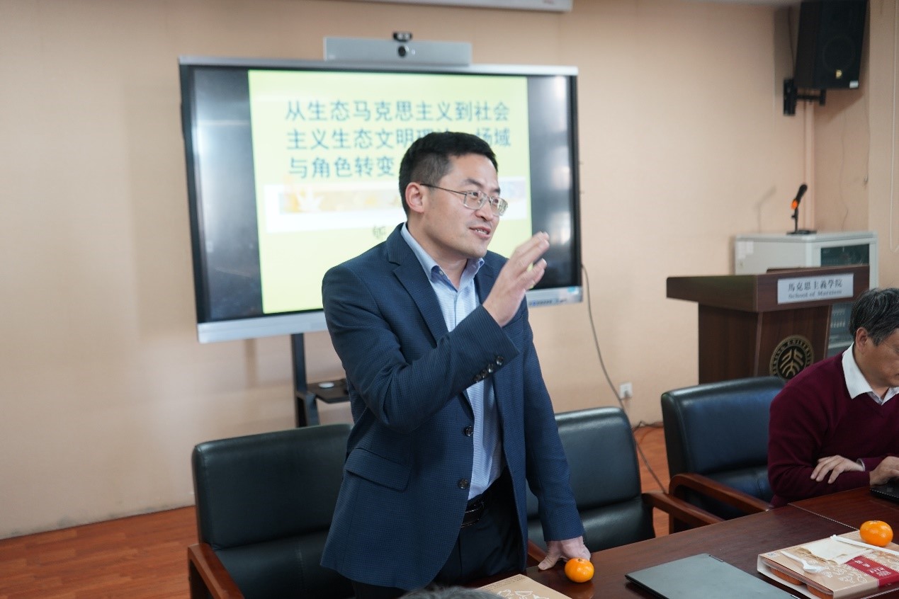 郇庆治教授指出,社会主义生态文明理论研究的一个重要而基础性的工作是回答社会主义生态文明及其建设何以必要、又如何可能这一根本性理论问题。为此,可以先从政治哲学视角重释我们长期理解为一种国外流派的“生态马克思主义”,然后通过“马克思主义生态学”这一过渡性概念,来实现更多是外来引入意义上的“生态马克思主义”与基于自主立场的“社会主义生态文明理论”的衔接。依此而言,“社会主义生态文明”可以说是狭义理解或特定构型意义上的“生态文明及其建设”,它意味着社会主义生态文明作为对社会主义的左翼政治指向与生态主义的自然价值感知的自觉结合,其哲学基础和依据是一种能动性的社会关系,以及建立在这种能动性社会关系基础上的不断改善的社会的自然关系。可以看出,从“生态马克思主义”经由“马克思主义生态学”到“社会主义生态文明理论”,反映出当代中国学者的马克思主义生态理论研究,正在实现从“它”到“我们”(“我”)的研究场域与角色的自主性立场的历史性转变,其重要性将会在中国特色与风格环境人文社会科学的形成发展及其对于社会实践影响的双重意义上逐渐得到呈现。自由讨论环节,与会老师积极踊跃提问,发言嘉宾一一进行回应。