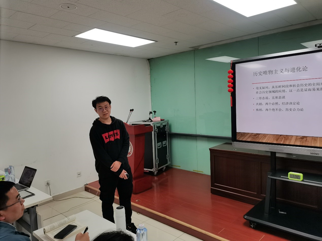 王先鹏同学就唯物史观谈到,现实历史是极其复杂的,不是简单地套用现成的公式就能形成对它的理解的。知性的思维方式主张把生产决定论、辩证法三段式以及马克思、恩格斯的个别论断当作万能的钥匙,套用全部当代生活问题,实际上无法对现实形成任何具有“真理性”的理解。因此,必须深入到社会历史的本质性一维中去,加深对于历史“复杂性”的认识。