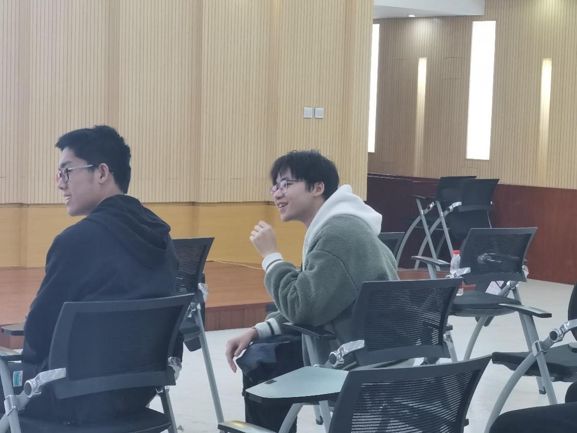 大家在交流环节畅所欲言、积极表达,提出了关于思政课程认知的疑惑,相互分享了各自的学习经验。有的同学也从不同站位出发,提出了对于思政课堂的建议。二位助教表示将会将相关想法传递相应班级课堂,助力完善思政课程的教学。活动在掌声中顺利结束!