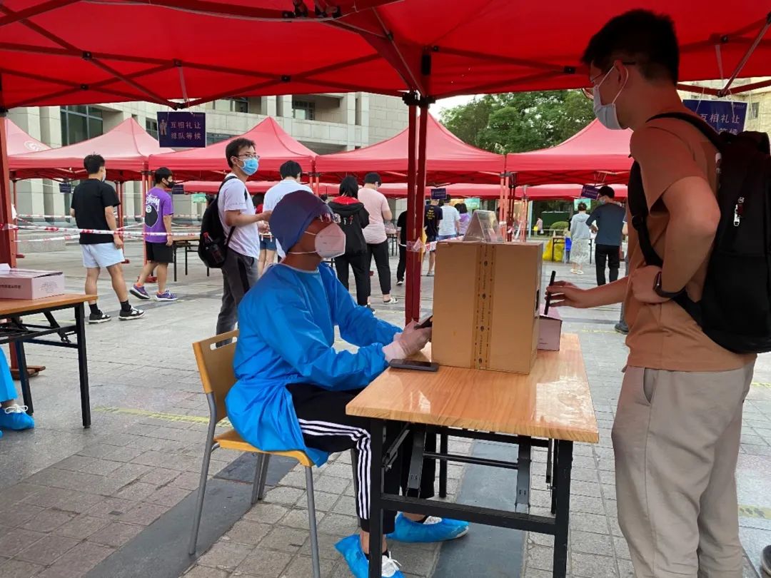 很荣幸能参与核酸检测志愿活动,我和19博1班支部同学们一道负责百讲前核酸扫码、场地消杀等工作。当脱下厚厚的防护服,密闭的胶皮手套,每位同学都大汗淋漓,切实体会到医务工作者的艰辛不易以及劳动育人的实践意义。今后我们也要更多参与到志愿服务中来,为抗疫事业贡献更多青春力量!