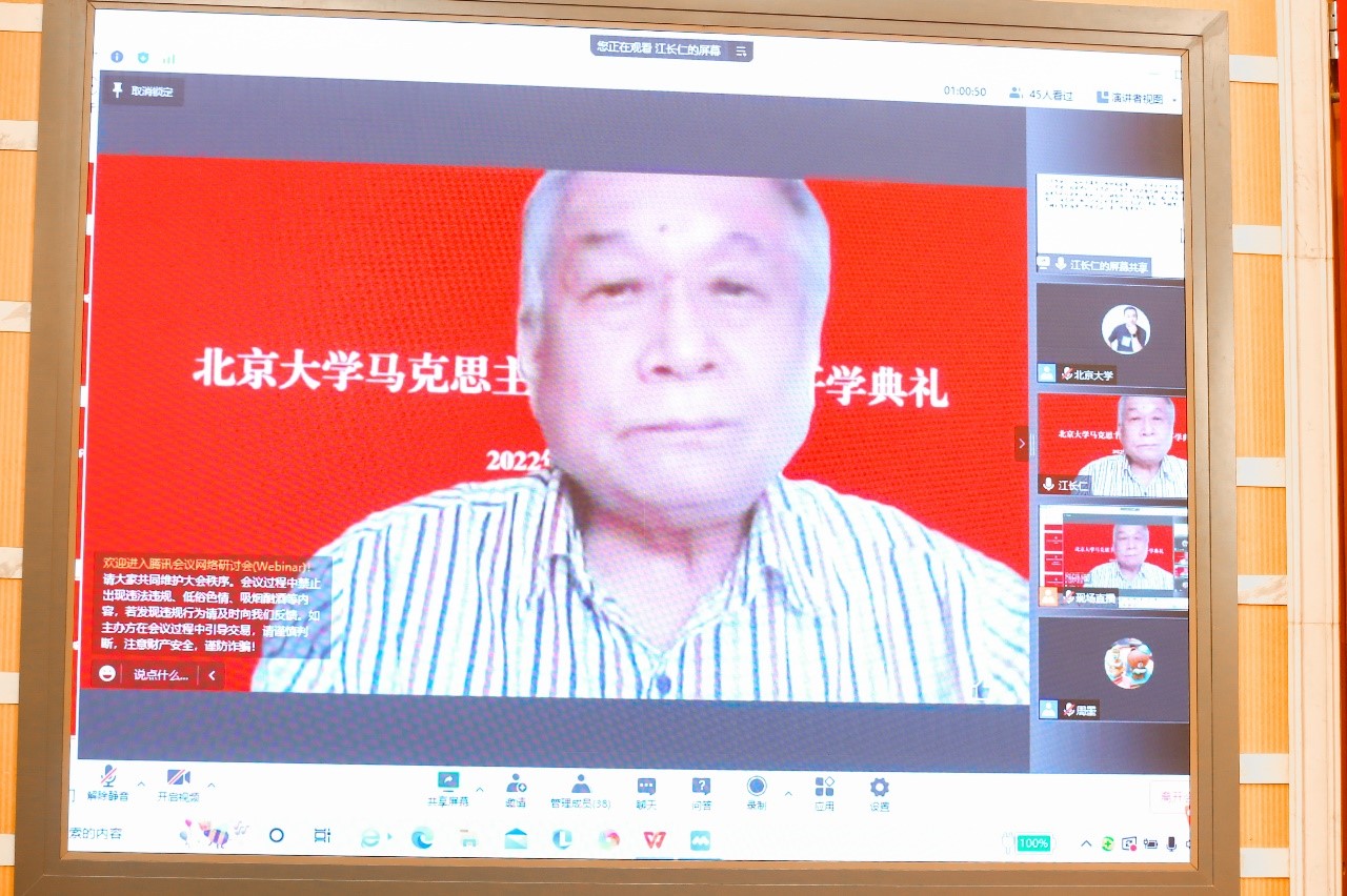 典礼在庄严的国歌声中拉开序幕。304永利集团官网入口荣休教师代表江长仁教授在线上致辞。他以“多读书、读好书,才有底气”为主题,勉励同学们在新的起点上自律自强,不懈奋斗。他认为,要增强做中国人的志气、骨气、底气,对于青年学生来说,底气就是本领、知识,有底气的人是有能力、贡献、作为、知识的人。获得知识,必须多读书,读好书。通过讲述青年毛泽东和青年习近平的读书故事,他建议同学们读原著、悟原理,原原本本学习和研读经典著作。同时,坚持阅读与思考相统一,学会独立思考,学有所悟。最后,江老师勉励同学们树立远大理想,勇担国家富强、民族复兴重任,为中华民族屹立于世界民族之林而奋斗。